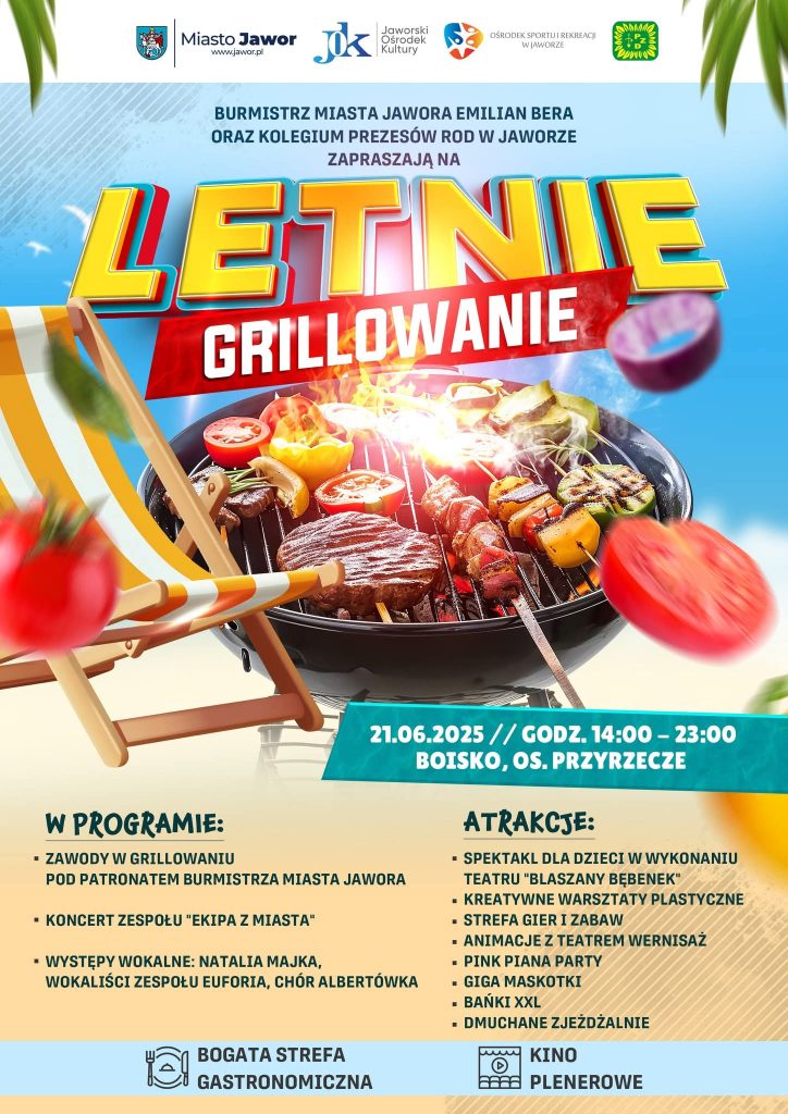 2025-06-11 | Brak komentarzy Burmistrz miasta Jawora Emilian Bera oraz Kolegium Prezesów ROD w Jaworze zapraszają na LETNIE GRILLOWANIE które odbędzie się 21.06.2025 w godzinach od 14:00 do 23:00 na boisku, os. Przyrzecze.